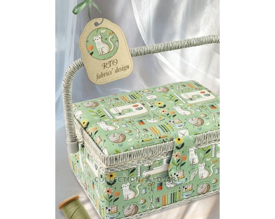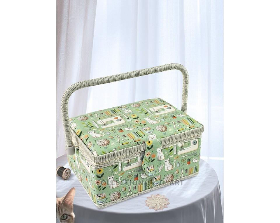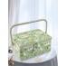 Description: There are a plastic insert with dividers, pincushion and a pocket for small parts storage inside of a sewing box.