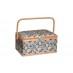 Description: There are a plastic insert with dividers, pincushion and a pocket for small parts storage inside of a sewing box.