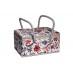 Description: There are a plastic insert with dividers, pincushion and a pocket for small parts storage inside of a sewing box.