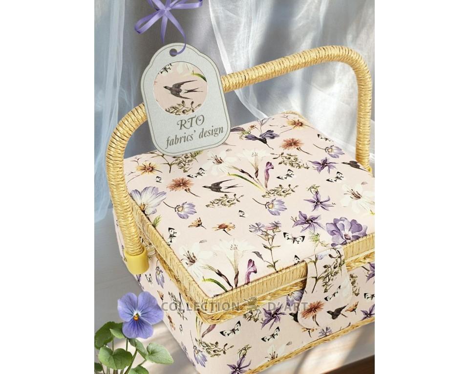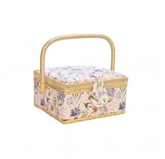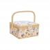 Description: There are a plastic insert with dividers, pincushion and a pocket for small parts storage inside of a sewing box.