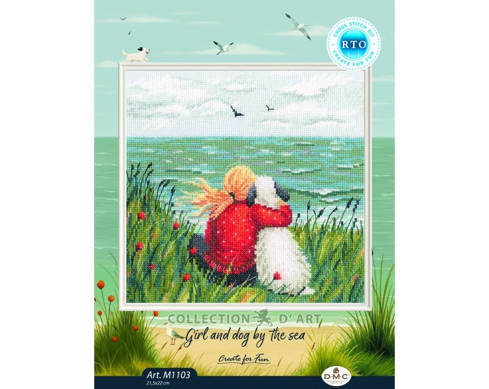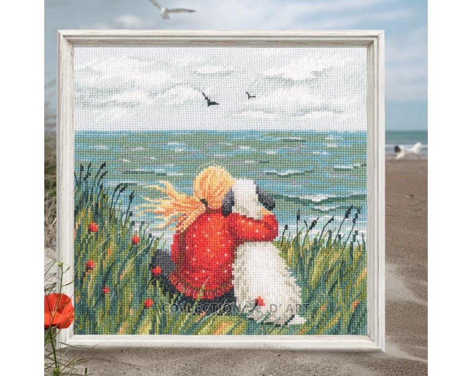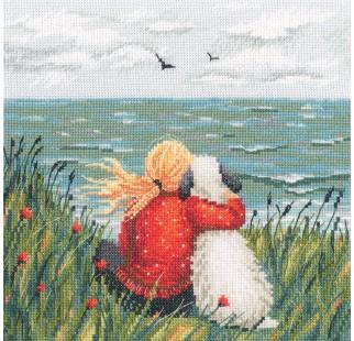 Cross-stitch kits "Girl and dog by the sea"