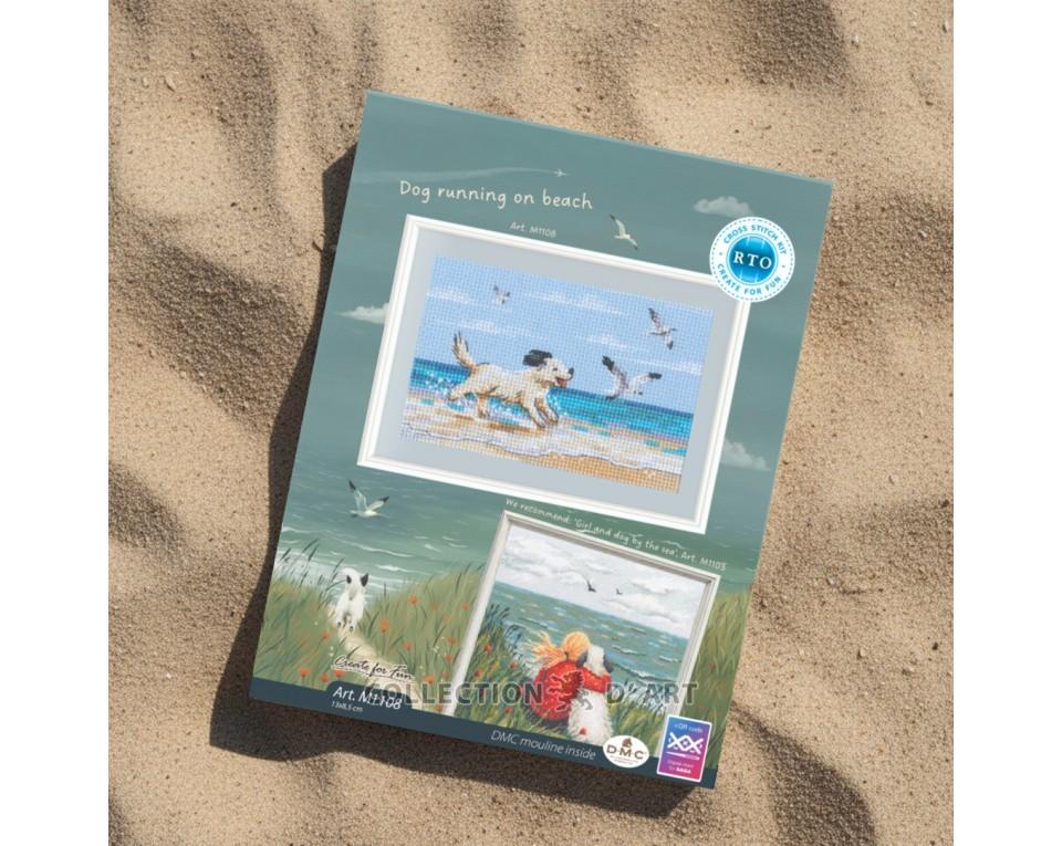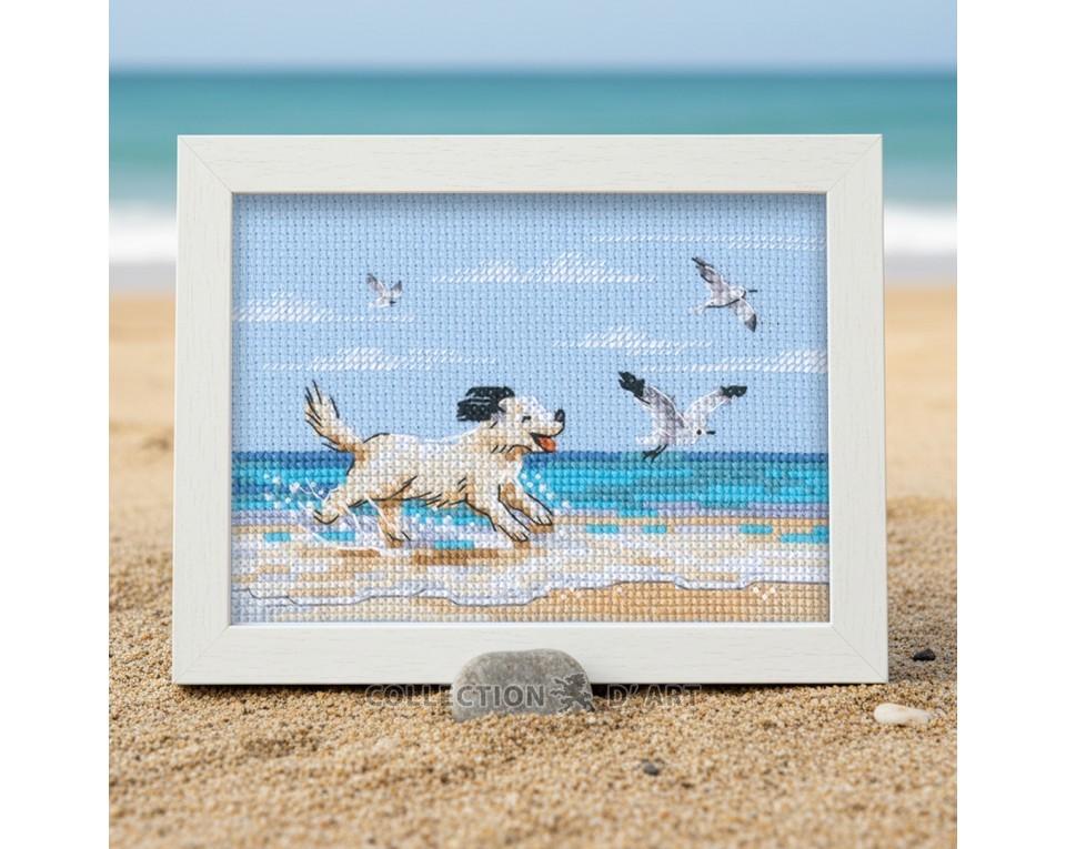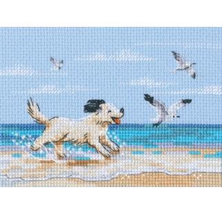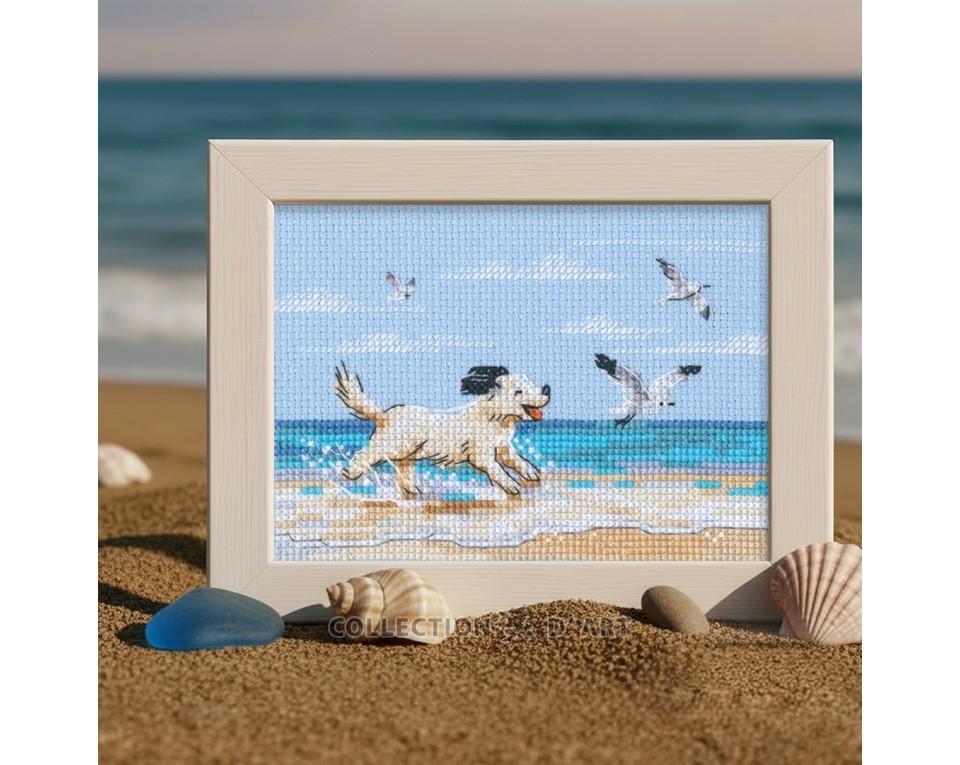 Cross-stitch kits "Dog running on beach"